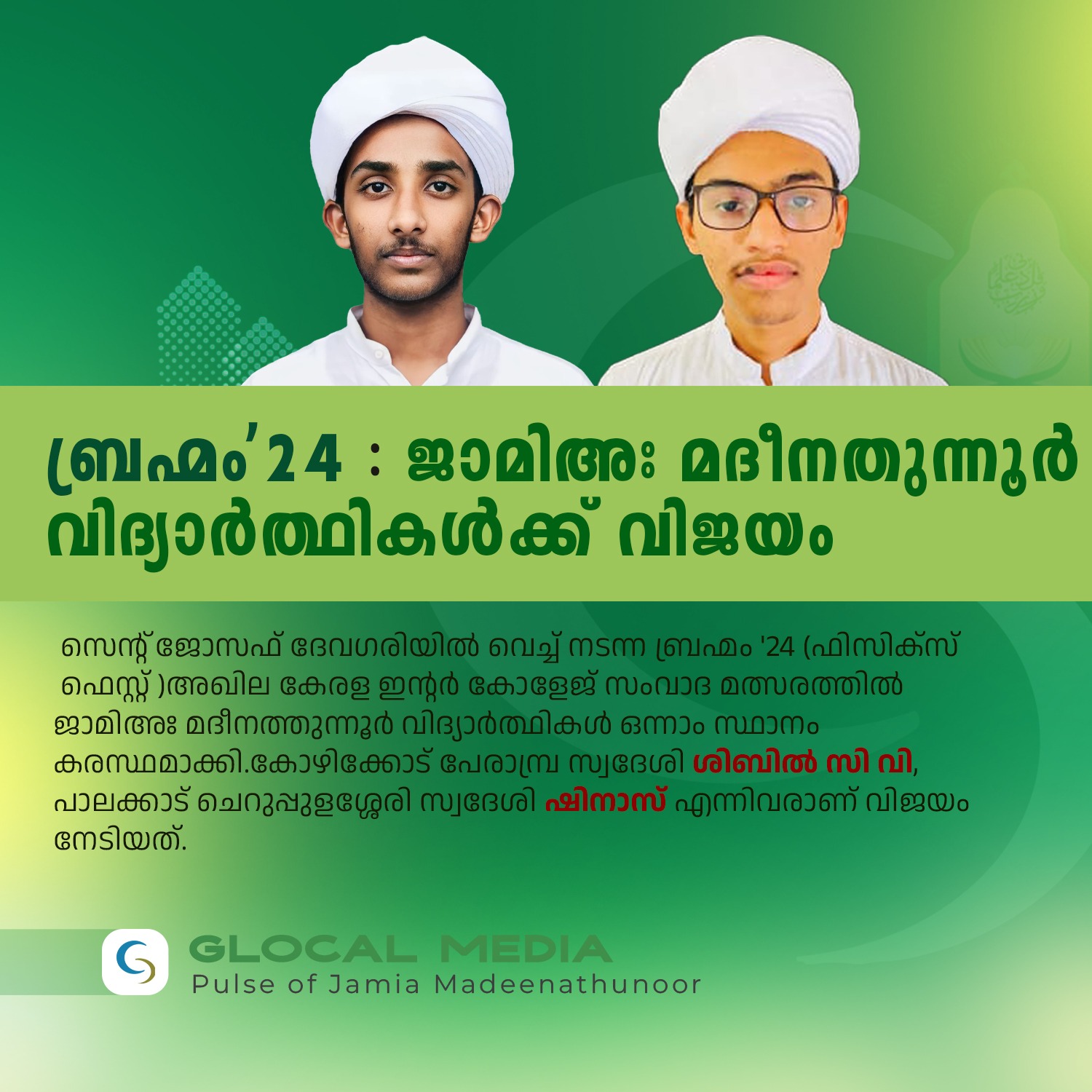 ബ്രഹ്മം’24 : ജാമിഅഃ മദീനതുന്നൂർ വിദ്യാർത്ഥികൾക്ക് വിജയം