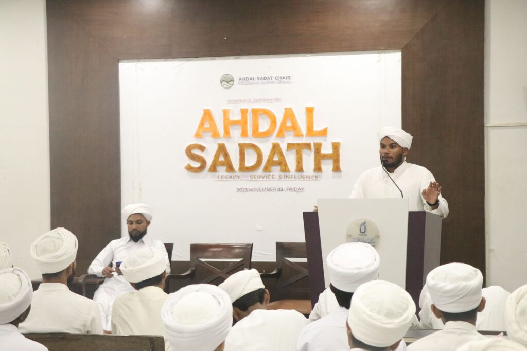 അഹ്ദൽ സാദാത്ത് ;പാരമ്പര്യം സേവനം സ്വാധീനം‘ എന്ന പ്രമേയത്തിൽ നടന്ന സെമിനാറിൽ സാദാത്ത് യാത്രകളുടെ അന്താരാഷ്ട്ര വ്യാപനവും സ്വാധീനവും എന്ന വിഷയത്തിൽ റമളാൻ അബൂബക്കർ നൂറാനി അക്കാഡമിക് ടോക്ക് നടത്തി.