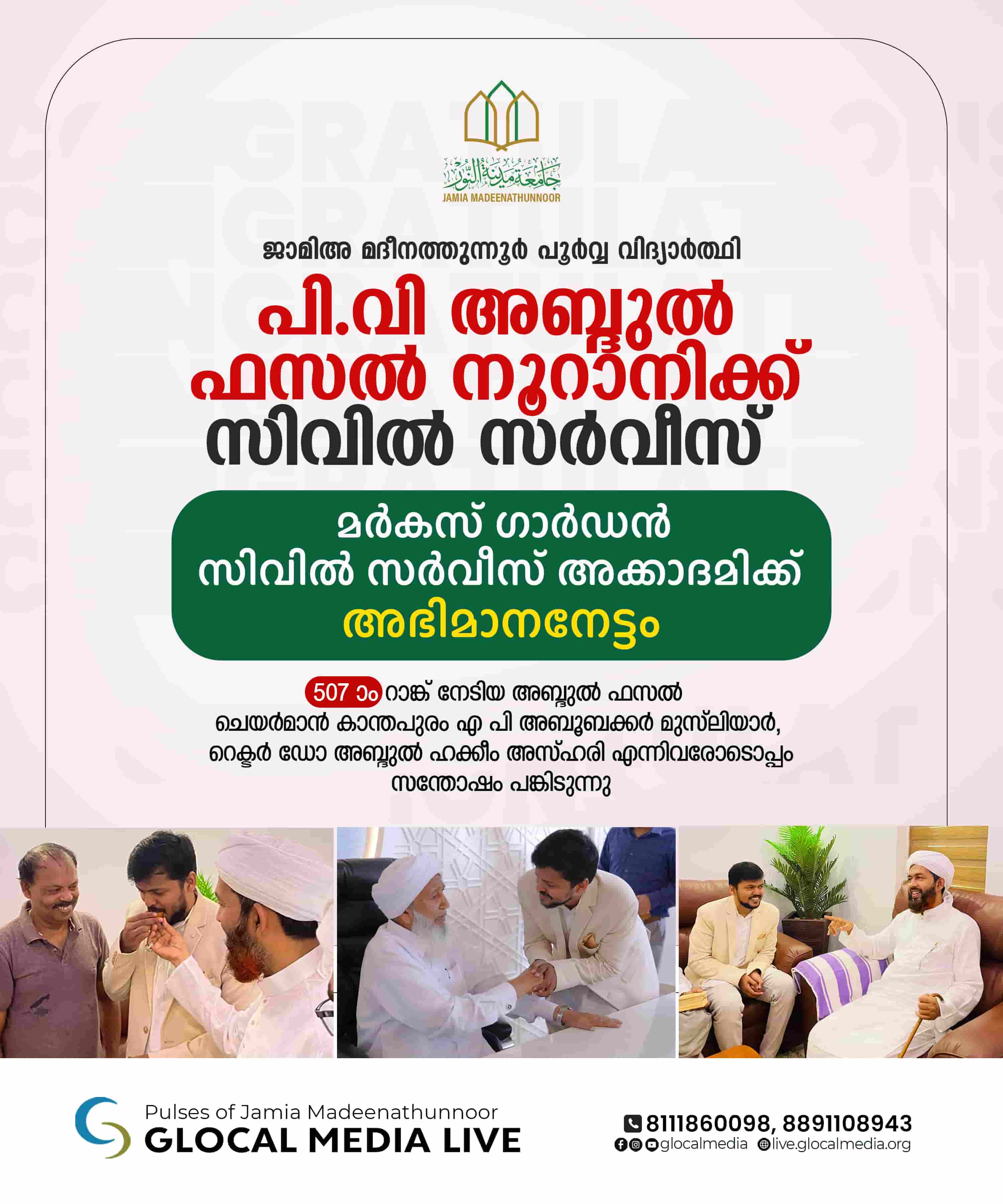 പി.വി അബ്ദുൽ ഫസൽ നൂറാനിക്ക് സിവിൽ സർവീസ്; അഭിമാന നേട്ടവുമായി മർകസ് ഗാർഡൻ അക്കാദമി