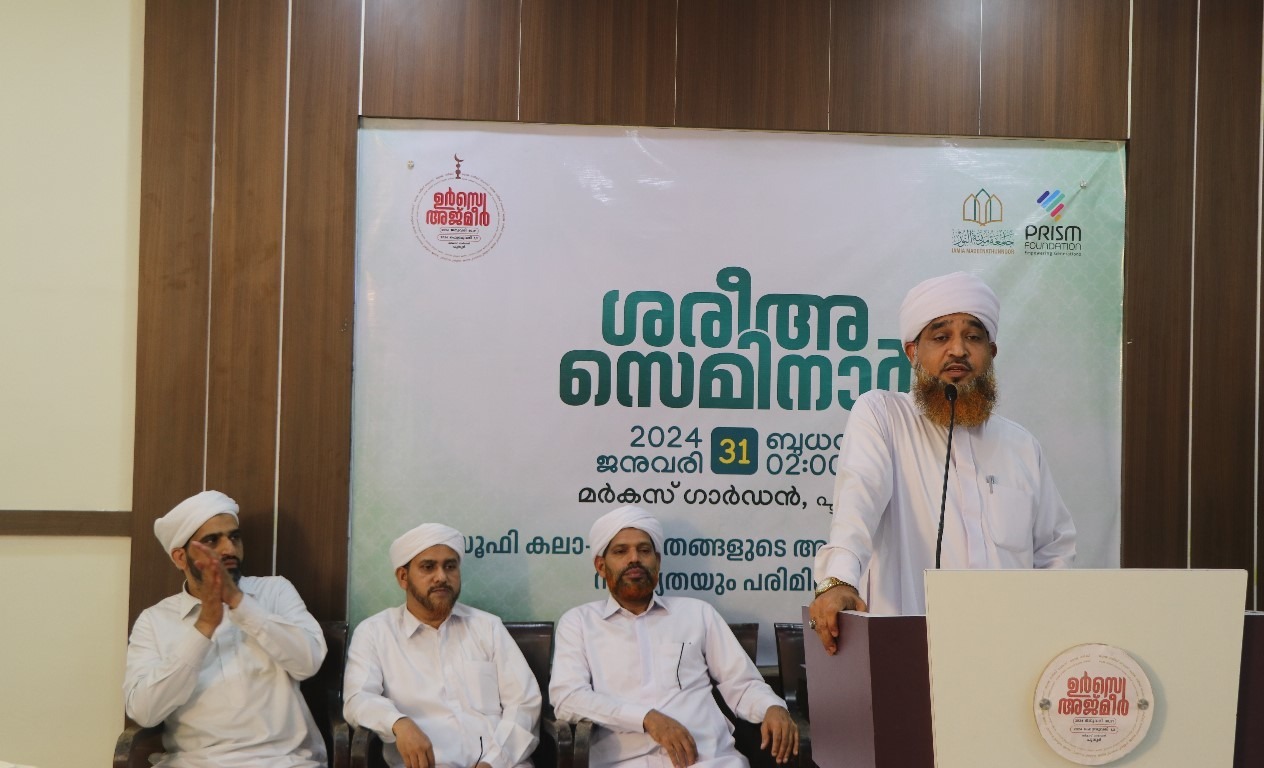 ഫോട്ടോ: മർകസ് ഗാർഡൻ ഉർസെ അജ്മീർ പ്രിസം ശരീഅ സെമിനാറിൽ മുഹ്യിദ്ധീൻ സഅദി കൊട്ടൂക്കര വിഷയാവതരണം നിർവഹിക്കുന്നു